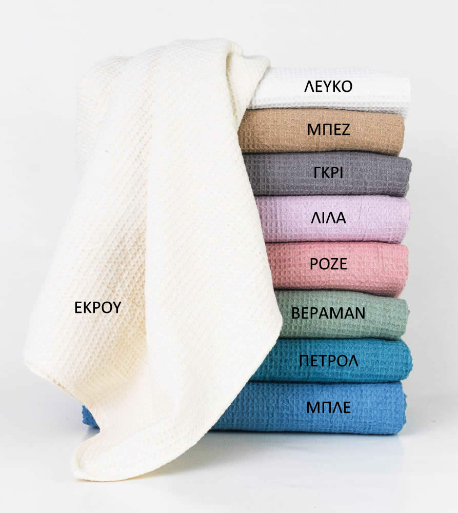 Κουβέρτα καλοκαιρινή μονή από ύφασμα πικέ waffle, 80% βαμβακερό 20% viscose, μονόχρωμη.