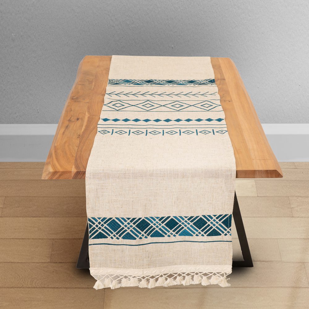 Λινή Κεντημένη Τραβέρσα 40×170 Μπεζ/Μπλε “Ilis Home”