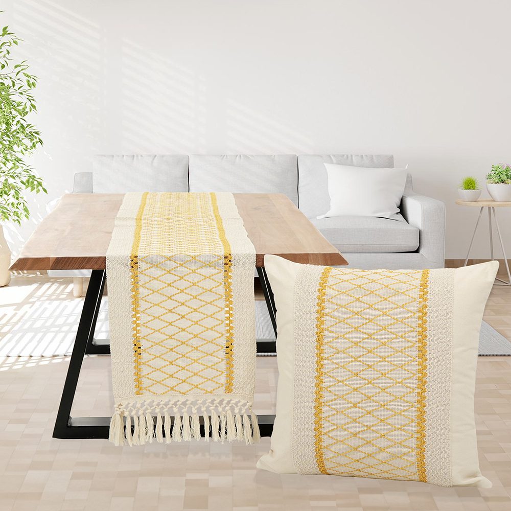 Λινή Τραβέρσα 33×170 Μπεζ/Κίτρινη “Ilis Home”