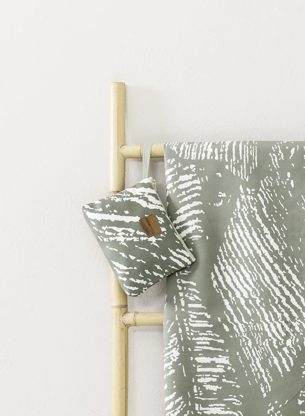 Το νεσεσέρ θαλάσσης Bali Breeze διαθέτει ένα μοντέρνο αφηρημένο σχέδιο, που με τις γραμμές και τα σχήματά του, παραπέμπει σε κλαδιά φοίνικα. Το σχέδιο αυτό προσδίδει μια αίσθηση εξωτικής κομψότητας και μοντέρνας τέχνης. Η χρωματική του παλέτα συνδυάζει απαλές αποχρώσεις του πράσινου με το λευκό, δημιουργώντας ένα κομψό και μοντέρνο αποτέλεσμα. Είναι άνετο και πρακτικό, καθώς διαθέτει κλείσιμο με φερμουάρ, εξασφαλίζοντας την ασφάλεια των προσωπικών σας αντικειμένων, αλλά και θηλιά για κράτημα, για εύκολη μεταφορά. Μια εξαιρετικά fashionable επιλογή για το καλοκαίρι που μπορεί να συνδυαστεί με τα matching προϊόντα της σειράς “Salty Love“, ώστε να απολαύσετε τις καλοκαιρινές σας εξορμήσεις.