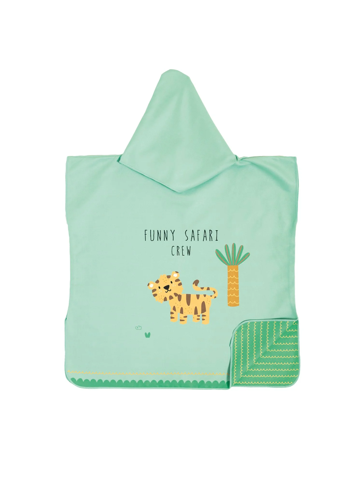 Το πόντσο θαλάσσης Funny Safari είναι ένα πανέμορφο και πρακτικό πόντσο με κουκούλα. Έχει ένα περιπετειώδες σχέδιο με ζώα της ζούγκλας, σε ένα χαρούμενο σκηνικό σαφάρι με φοίνικες, που προσδίδει μια αίσθηση καλοκαιρινής περιπέτειας και διασκέδασης. Οι φωτεινές αποχρώσεις του πράσινου και του κίτρινου, δημιουργούν μια χαρούμενη εικόνα που το κάνει αγαπητό στα παιδιά. Το πόντσο Funny Safari λόγω της τεχνολογίας quick dry στεγνώνει πολύ γρήγορα, καθιστώντας το ιδανικό για τα παιδιά που θέλουν να παίζουν συνέχεια στο νερό. Ταυτόχρονα προσφέρει άνεση και ελευθερία κινήσεων, επιτρέποντάς τους να παίζουν και να κινούνται με άνεση ενώ προστατεύονται και από τον ήλιο. Είναι απαραίτητο για τις διακοπές και τα ταξίδια καθώς πιάνει ελάχιστο χώρο είναι εξαιρετικά ελαφρύ στεγνώνει και καθαρίζει εύκολα, χαρίζοντας ταυτόχρονα ξεχωριστό στιλ.
