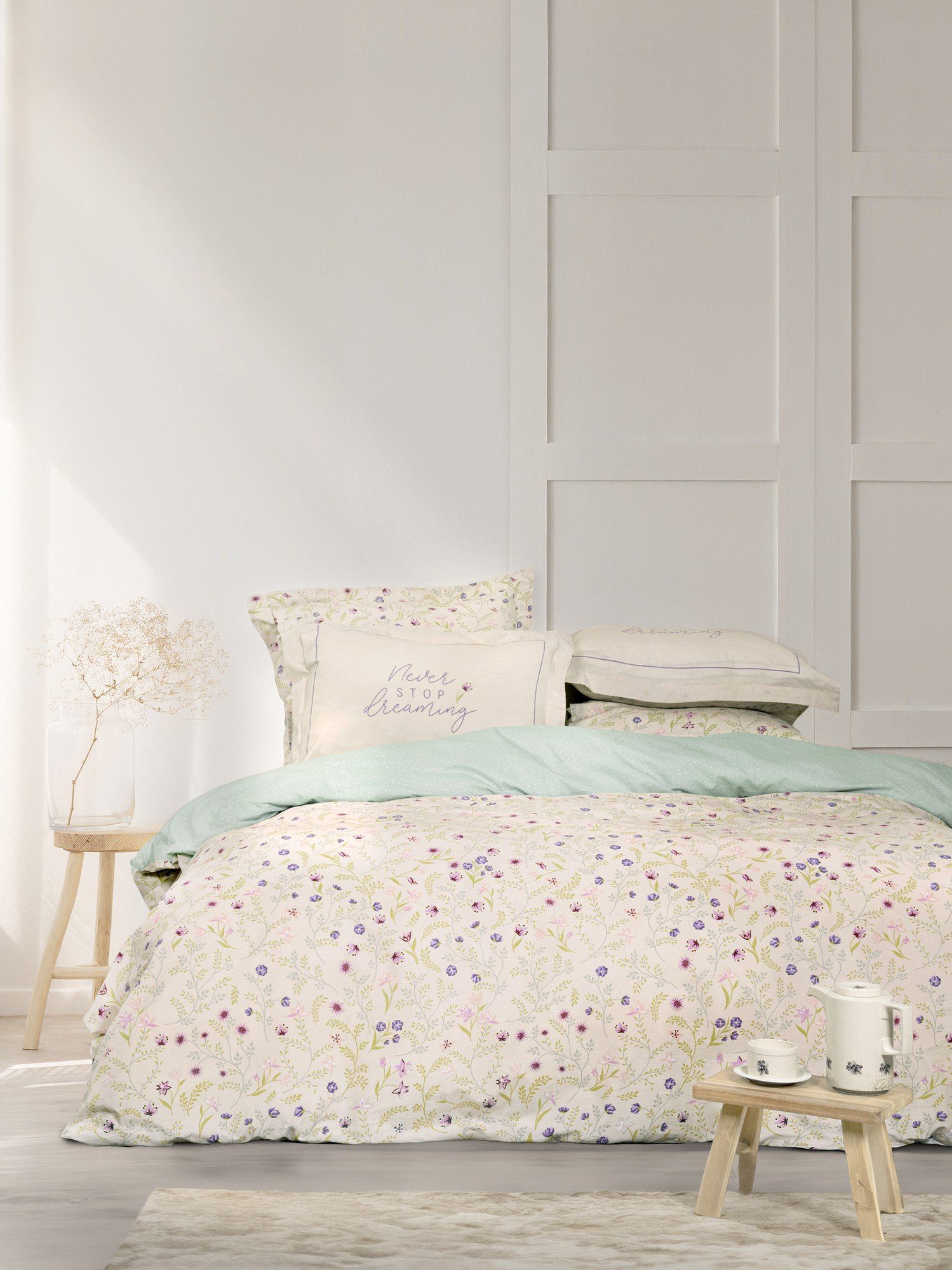 Τα βαμβακερά σεντόνια Dream Garden είναι ένας πραγματικός καμβάς της φύσης. Έχουν πλούσιο και ζωντανό μοτίβο με πάμπολλα μικρά, πολύχρωμα λουλούδια σε αποχρώσεις του ροζ, του μωβ και του πράσινου να απλώνονται σε ένα απαλό, κρεμ φόντο. Διαθέτουν επίσης oxford μαξιλαροθήκες με λιτό πάνελ μοτίβο, που συμπληρώνει μια αίσθηση απόλυτης γαλήνης και φρεσκάδας. Μετατρέψτε το υπνοδωμάτιό σας σε έναν ονειρεμένο κήπο με το σετ σεντονιών Dream Garden και απολαύστε μια απαλή και δροσερή αίσθηση που εξασφαλίζει έναν ξεκούραστο και ήρεμο ύπνο.