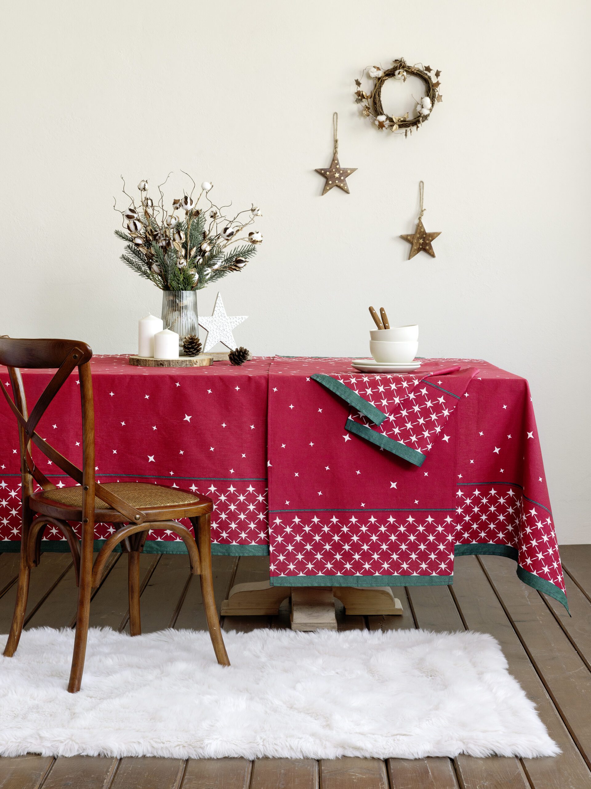 Brand: Nima Home Διαστάσεις: Τραπεζομάντηλο 150×150 Χρώμα: Κόκκινο, Πράσινο Διαθεσιμότητα: 3 ημέρες