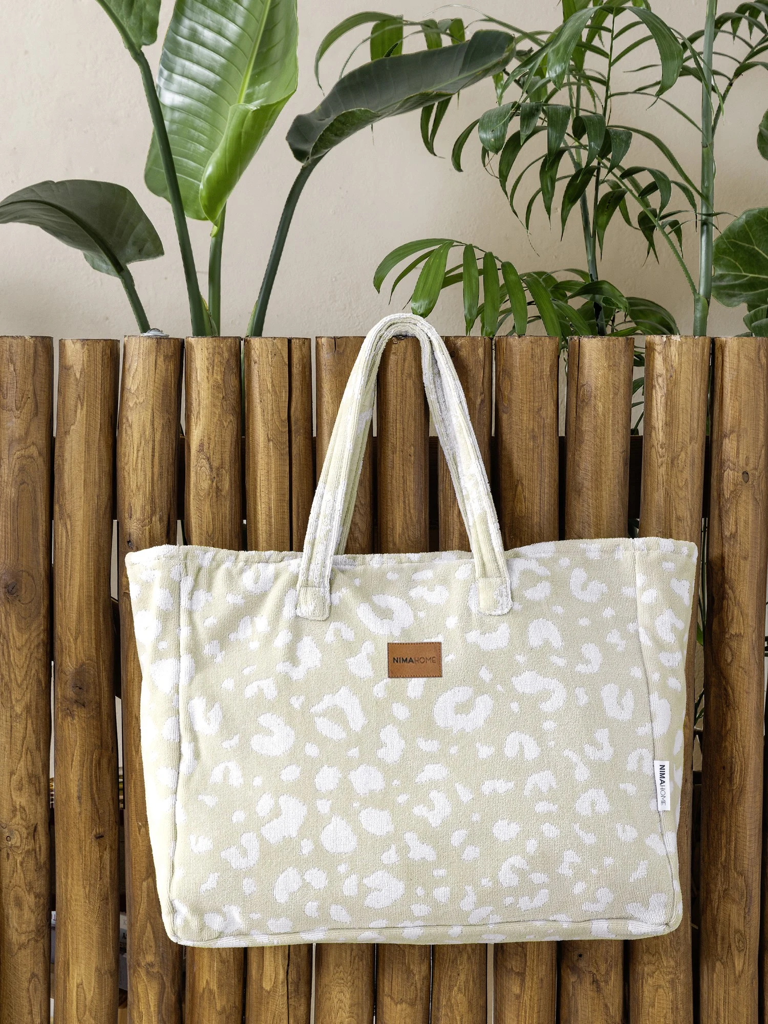 Η τσάντα θαλάσσης Wildlife διαθέτει ένα κλασικό λεοπάρ μοτίβο με ακανόνιστα σχήματα, προσδίδοντας μια άγρια και εξωτική αισθητική. Το μοτίβο είναι διακριτικό, αλλά αρκετά έντονο για να τραβήξει τα βλέμματα. Αποδίδεται σε γήινο μπεζ χρώμα που θυμίζει το χρώμα της άμμου σε συνδυασμό με λευκό, δίνοντας ένα φωτεινό και κομψό αποτέλεσμα. Η τσάντα θαλάσσης Wildlife, μπορεί να συνδυαστεί με τα ασορτί προϊόντα της σειράς Wildlife, που είναι το νεσεσέρ και η πετσέτα θαλάσσης, ή και με τα προϊόντα της σειράς Wildl Coast, δημιουργώντας ένα απίθανο mix and match αποτέλεσμα, για την πιο trendy εμφάνιση στις καλοκαιρινές σας εξορμήσεις.